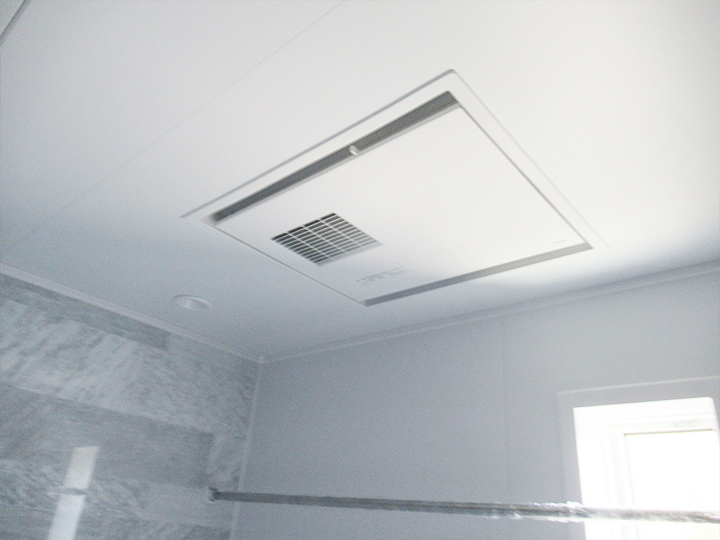 | 浴室天井には浴室の換気と暖房、乾燥が行える一台三役の「三乾王」を取り付けていますので、冬場でも暖かいお風呂に入ることができます。 このような設備をつけることで、今回の浴室リフォームには「子育てエコホーム支援事業」で98,000円分の補助金が適用されました。 |